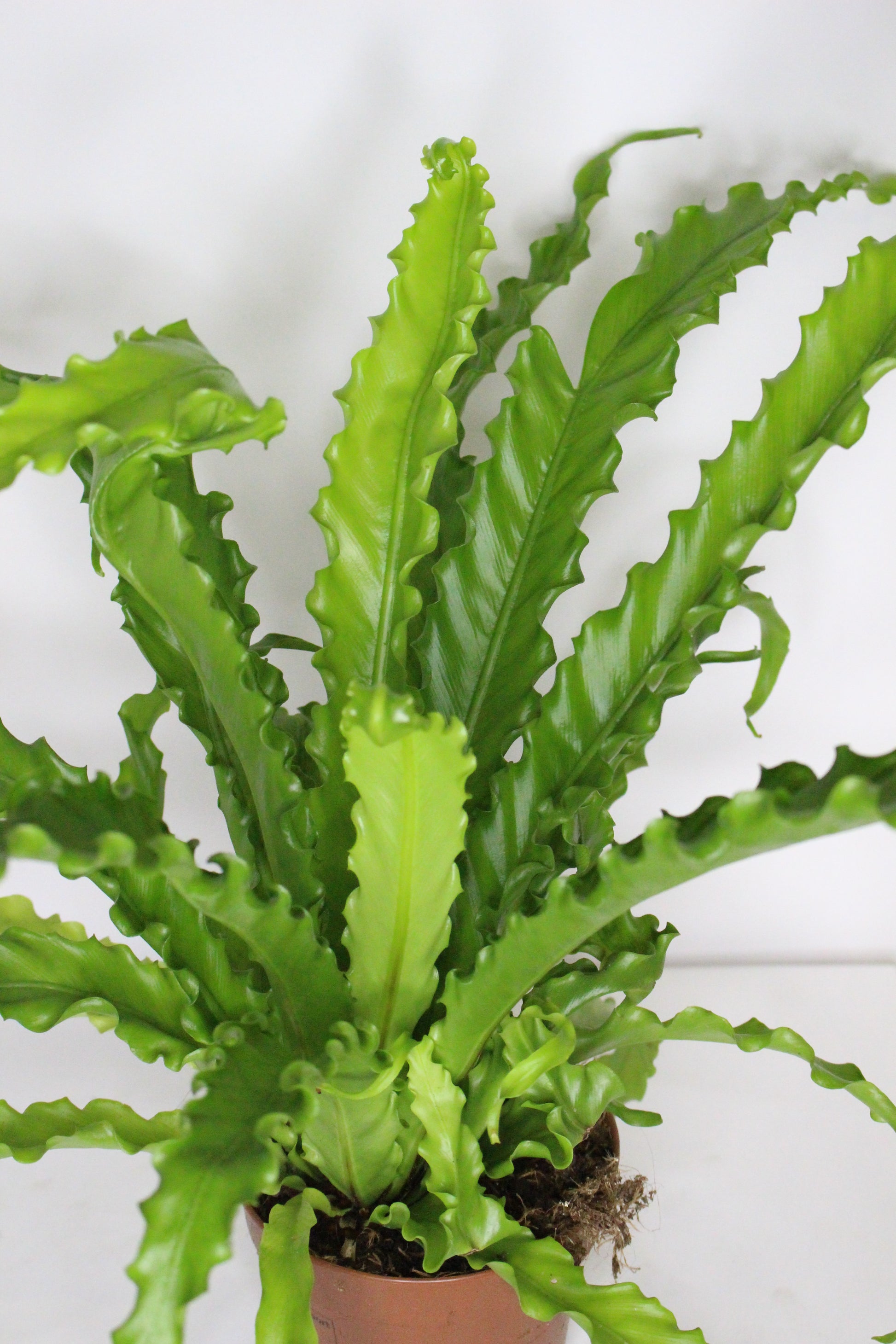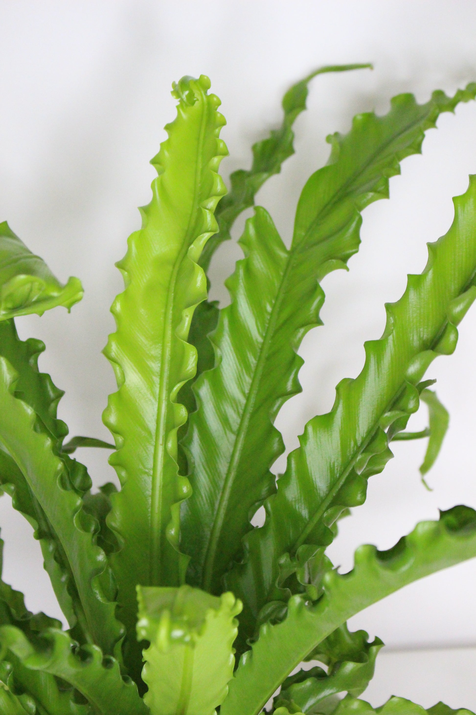 El Helecho Asplenium antiquum 'Osaka' es una variedad del helecho nido de ave (Asplenium antiquum) conocido por sus hojas largas, arqueadas y de bordes ondulados. Es una planta de interior resistente y de crecimiento elegante, que necesita luz indirecta y alta humedad, siendo ideal para baños o cocinas. Se debe mantener el sustrato húmedo pero bien drenado para evitar la pudrición en el centro de la roseta.