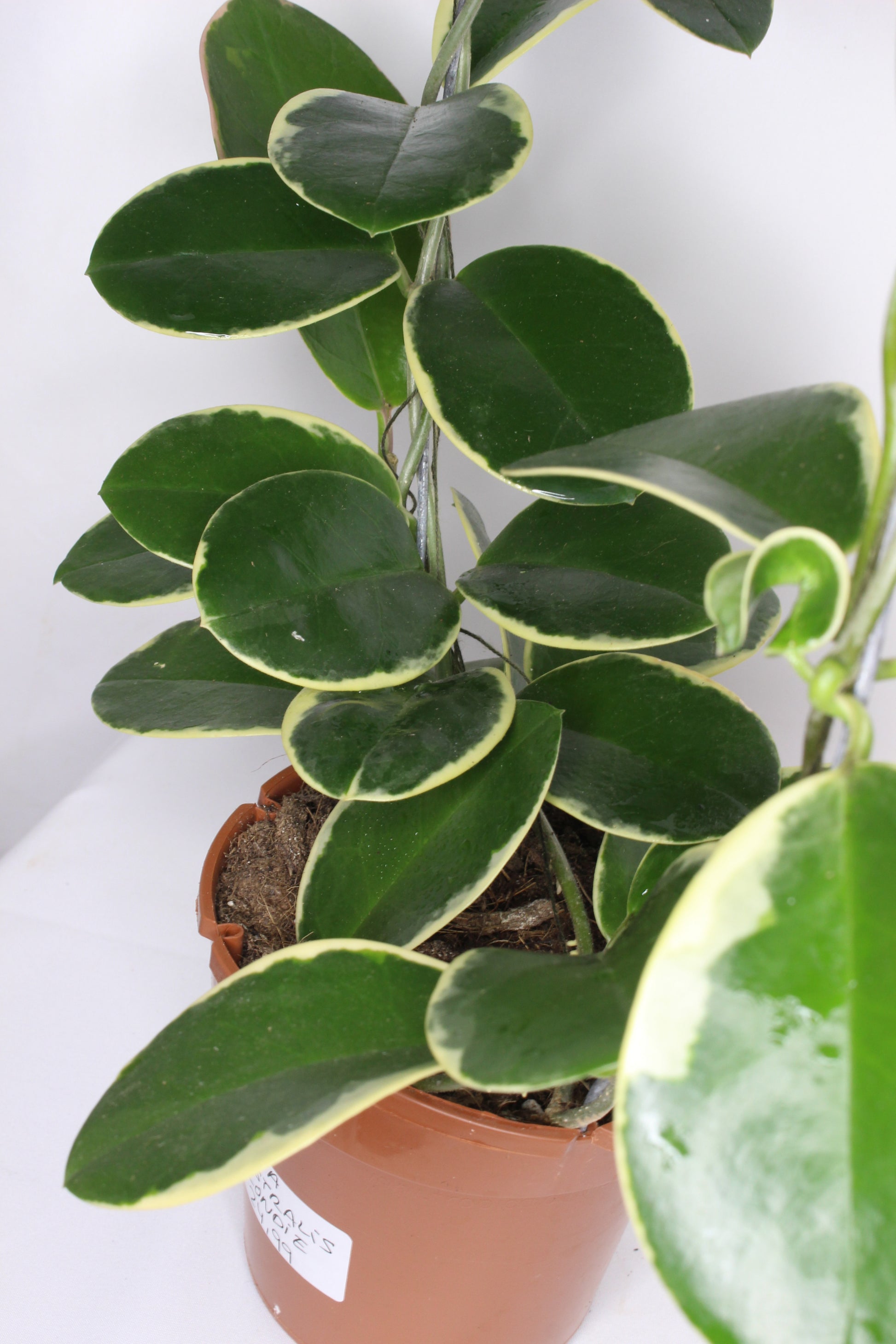 Hoya australis Tricolor, planta ornamental con hojas verdes, blancas y rosadas, ideal para interiores luminosos y segura para mascotas (pet-friendly). Fácil de cuidar, perfecta para coleccionistas, decoración de interiores o como regalo especial.
