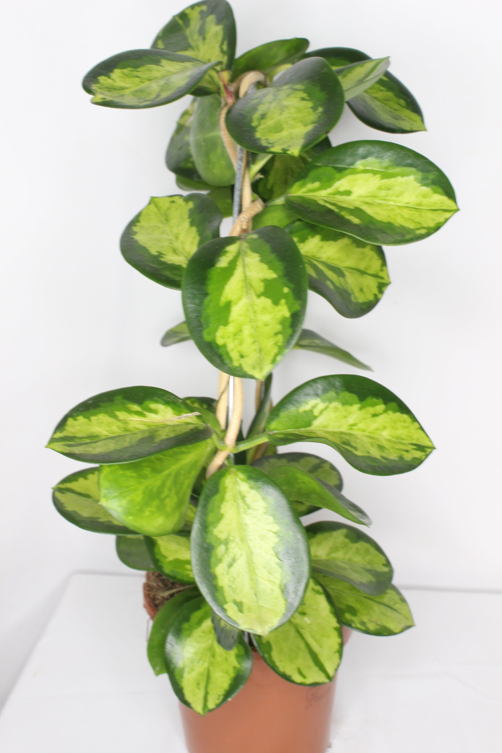 Hoya australis Tricolor, planta ornamental con hojas verdes, blancas y rosadas, ideal para interiores luminosos y segura para mascotas (pet-friendly). Fácil de cuidar, perfecta para coleccionistas, decoración de interiores o como regalo especial.