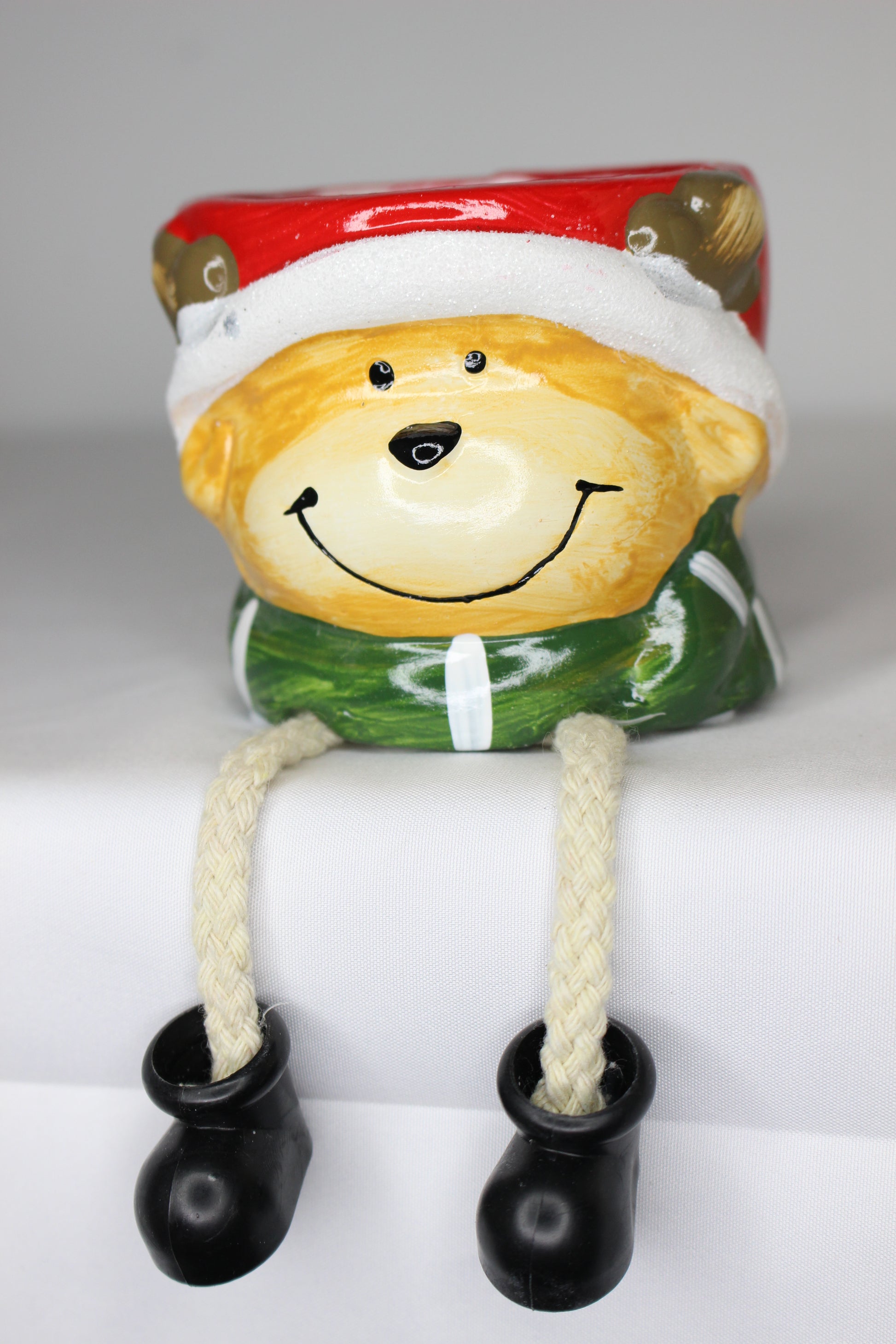 Dale un toque divertido y festivo a tu hogar con este encantador macetero navideño, decorado con unas simpáticas patas colgantes que aportan movimiento y personalidad. Perfecto para colocar plantas pequeñas o decoraciones de temporada, se convierte en un detalle único que ilumina cualquier rincón. Ideal para mesas, estanterías o centros, añade encanto, color y espíritu navideño al instante.