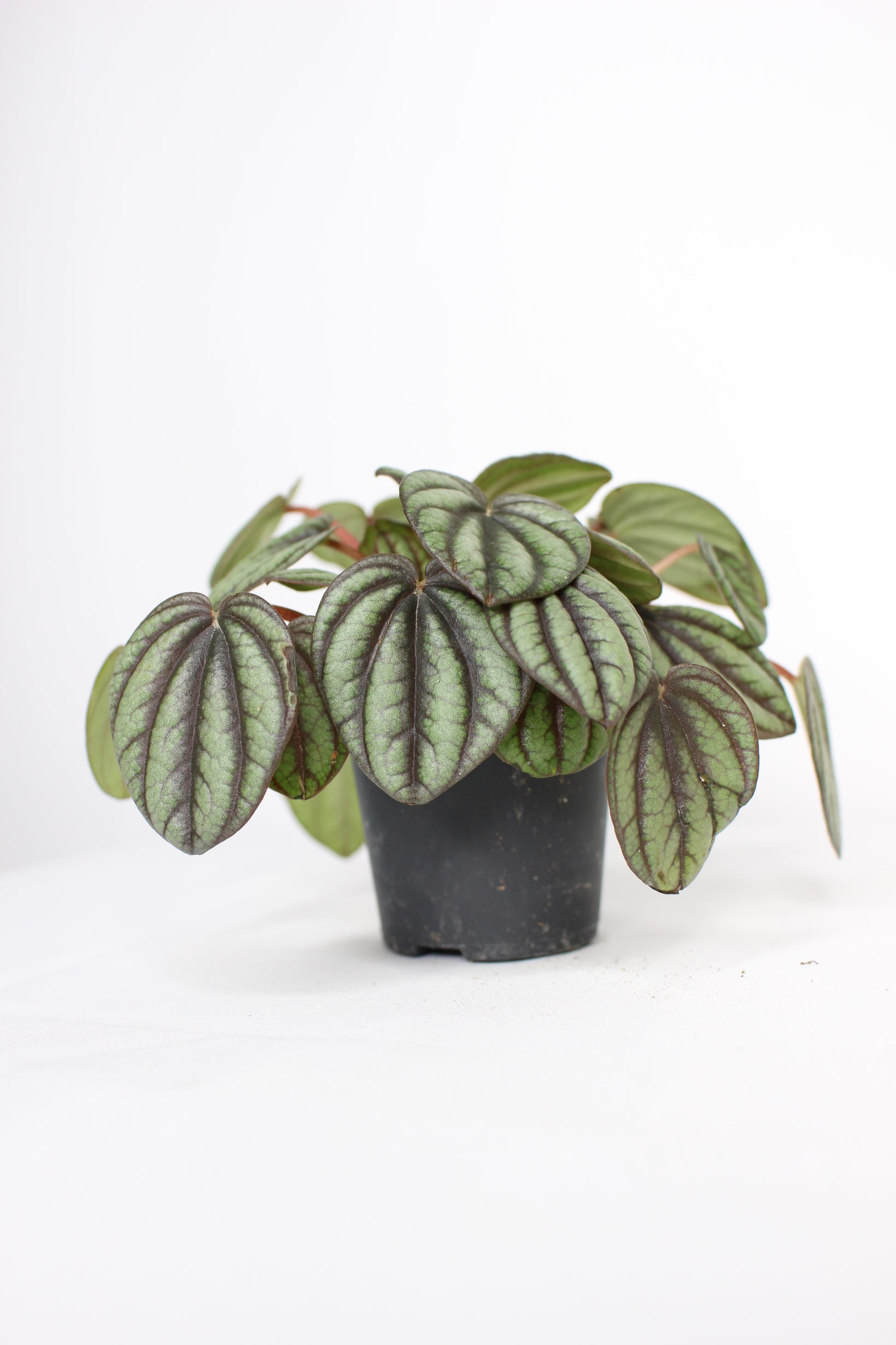 La Peperomia albovittata es una planta de interior blanca compacta y ornamental, con hojas verdes y nervaduras que destacan en cualquier espacio. Prefiere luz indirecta, riego moderado y un sustrato bien drenado”.