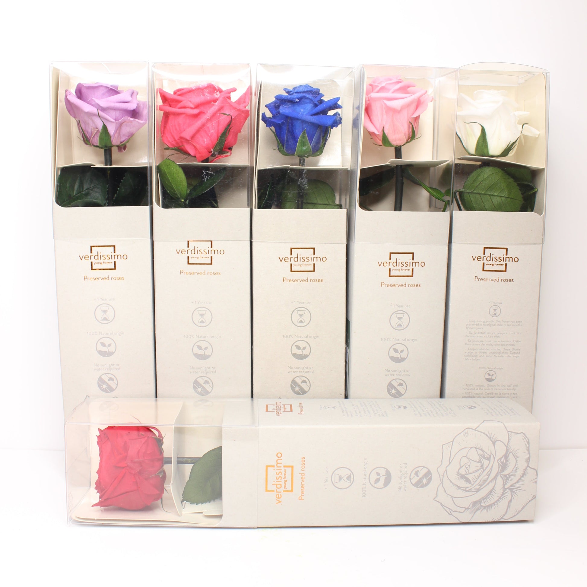 Cuando hablamos de Flores preservadas hablamos de flores reales. Estas rosas 100% naturales, se han cortado en su momento de mayor frescura y esplendor y posteriormente se han sometido a un cuidadoso tratamiento para que perduren en el tiempo sin necesidad de luz solar o agua.
