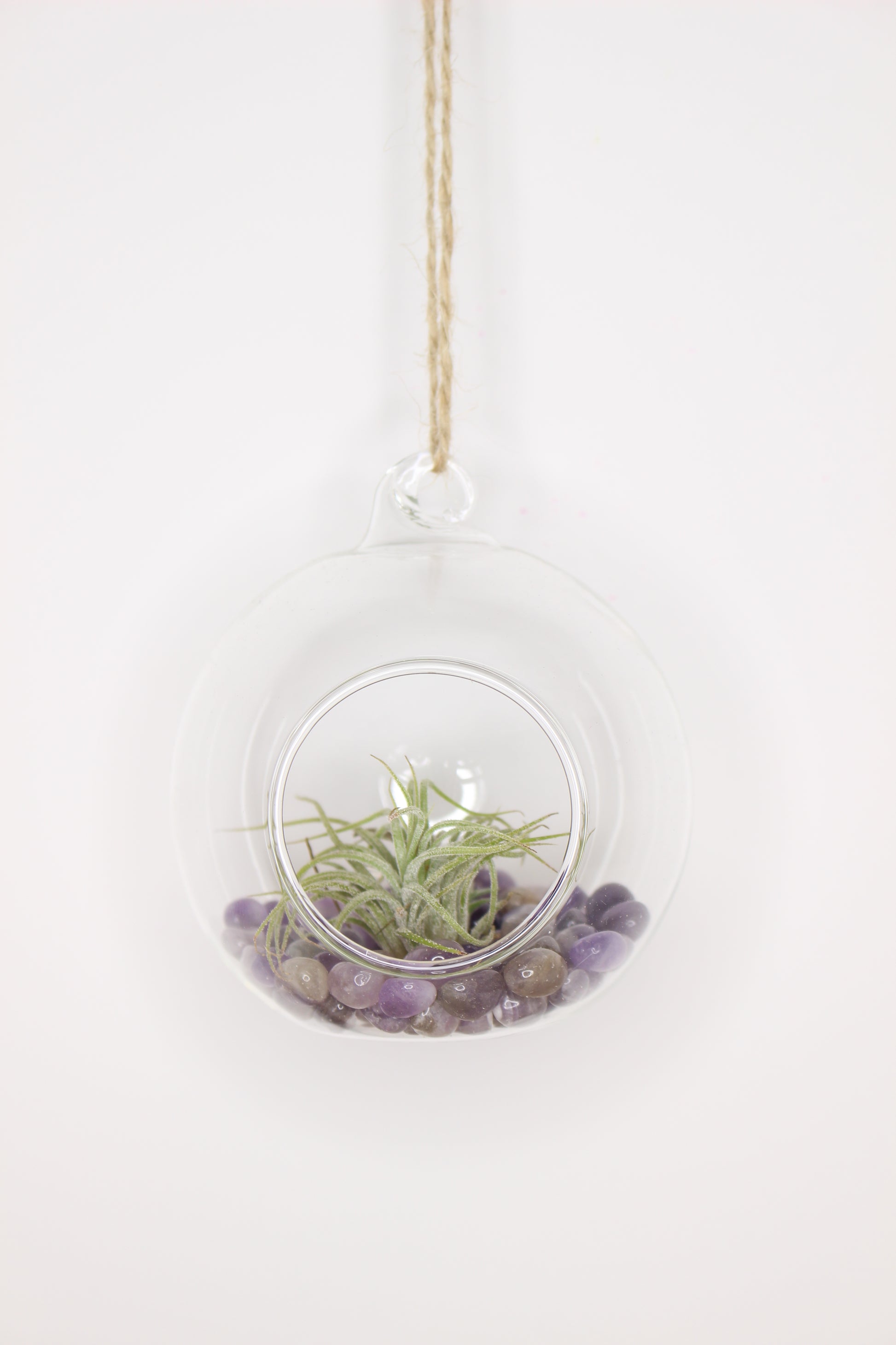 El terrario abierto viene separado en 3 partes,, piedras mineral, la plantita y el envase con cuerda para colgar, Viene preparado para el montaje perfecto para usar tu creatividad y que nada se dañe en el transporte.