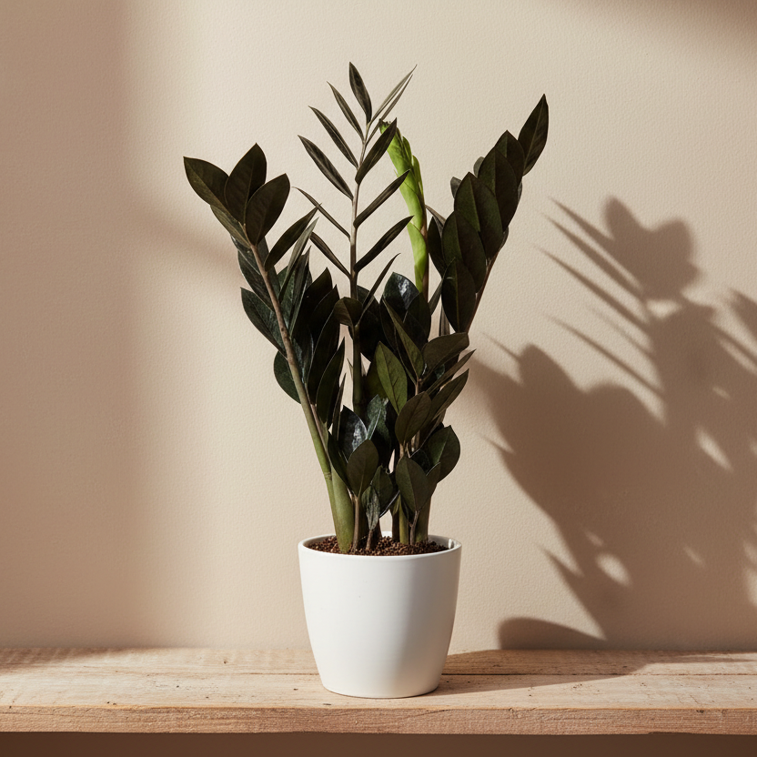 La Zamioculca Raven es una planta de interior decorativa y resistente, conocida por sus hojas negras brillantes que aportan un toque elegante y moderno al hogar. Ideal para principiantes y amantes de las plantas que buscan un detalle sofisticado y de bajo mantenimiento.